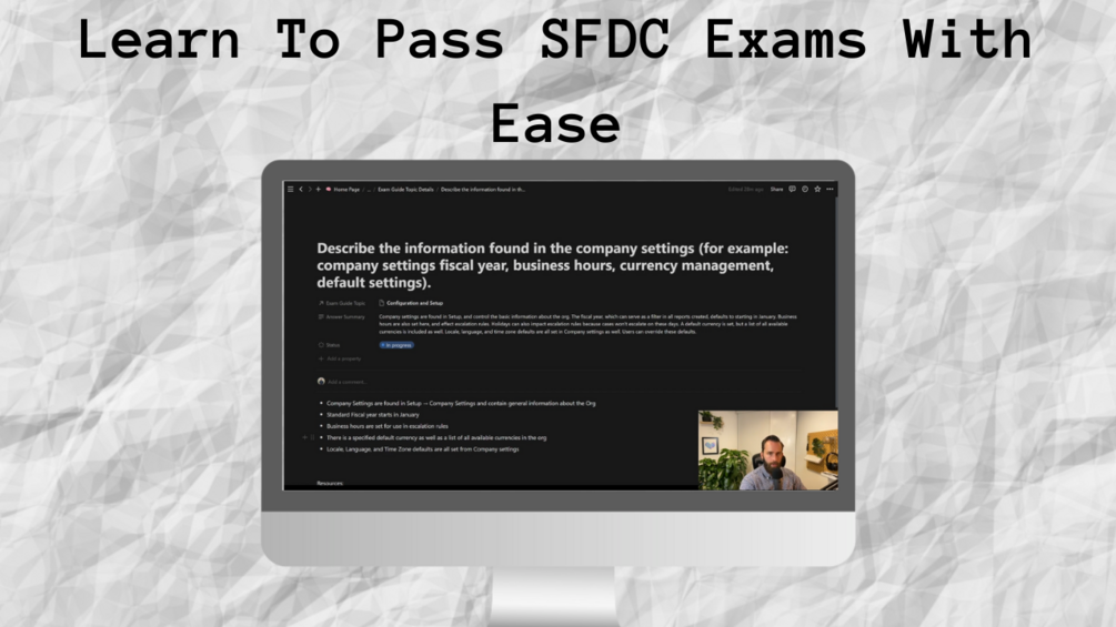 I've outlined the study method that earned me 5 Salesforce Certifications, and most importantly, helped me feel confident when I took the test. You'll learn memorization techniques, note taking, and how to review your notes with ease. I've also included note taking templates made specifically for Salesforce Certification exams that will keep you organized and on track.
